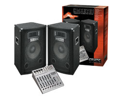 This complete PA system includes a stereo powered mini mixer and a pair of speaker enclosures with 25 connecting cables. It is the perfect system for small venues where stereo input and outputs are desired.